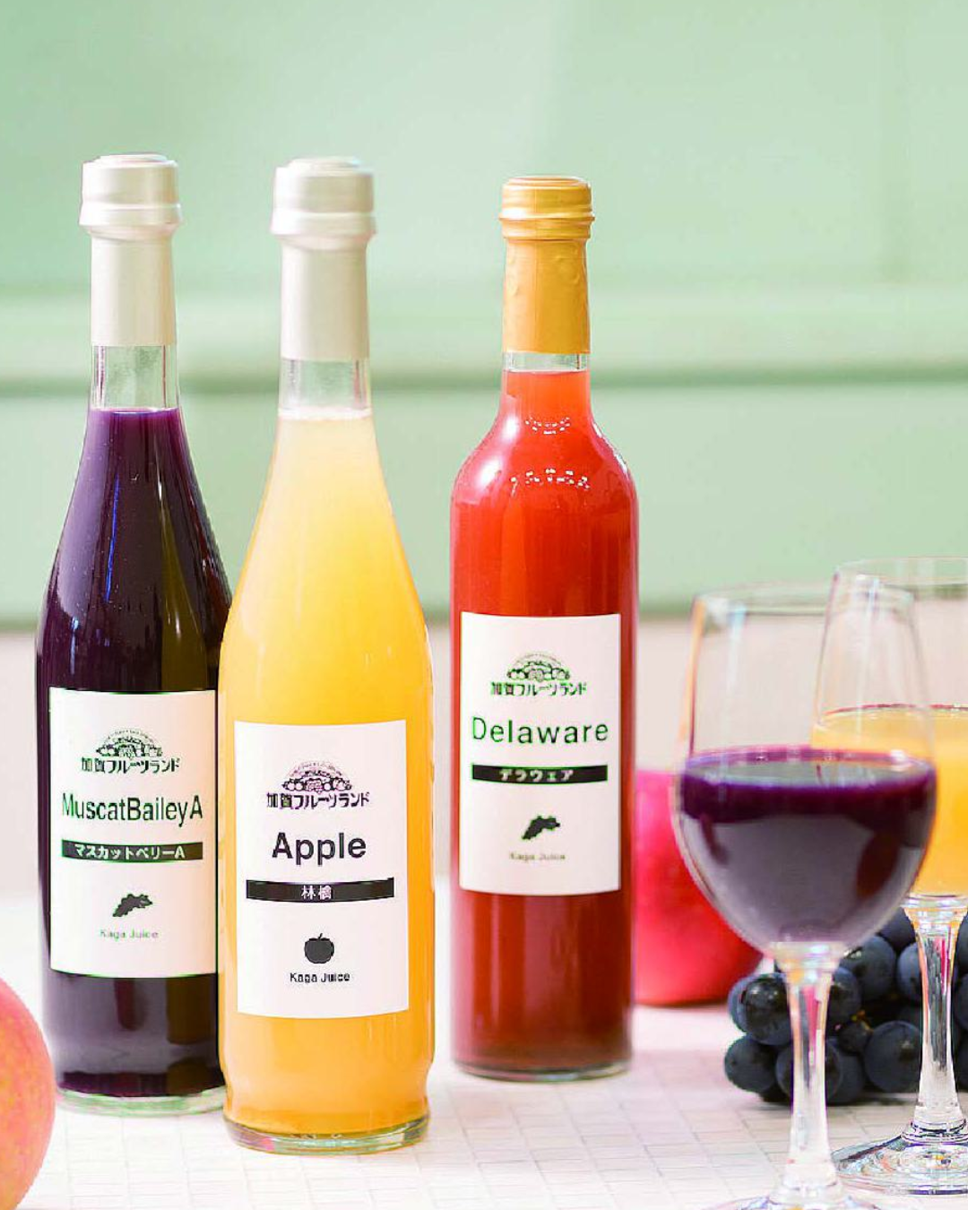 自社農園で栽培したブドウをはじめ、最も美味しく仕上がった状態の加賀産の果物のみを原料に使用しています。