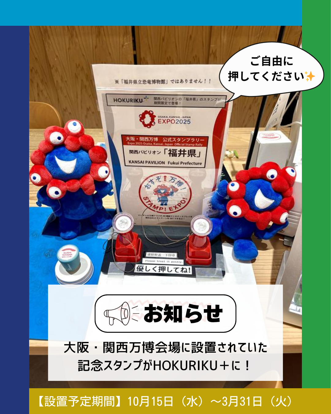 大阪・関西万博会場に設置されていた富山県・福井県の記念スタンプがHOKURIKU+に!