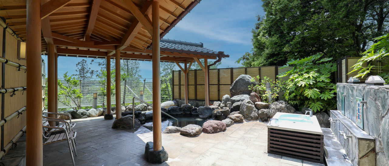 露天風呂:みどりの風の中、心ゆくまでリラックス自然石の露天風呂には、湯情が薫りたちます
