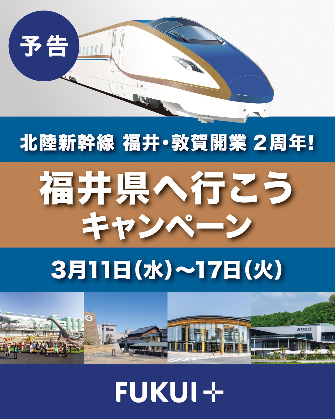 3/11(水)〜3/17(火)は、北陸新幹線 福井・敦賀開業 2周年! 福井県へ行こうキャンペーン を開催します!