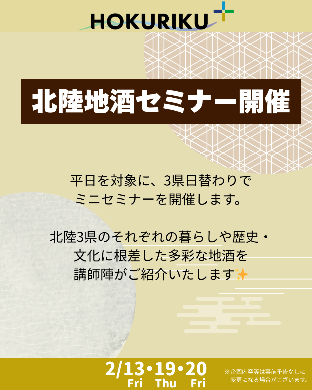北陸の酒36フェア~私の推し酒探し~ 北陸地酒セミナーのお知らせ